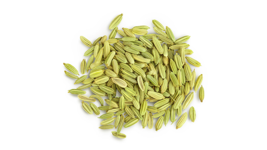 Aromatic fennel seeds with a mild sweet flavor, commonly used to support digestion and soothe the stomach.
